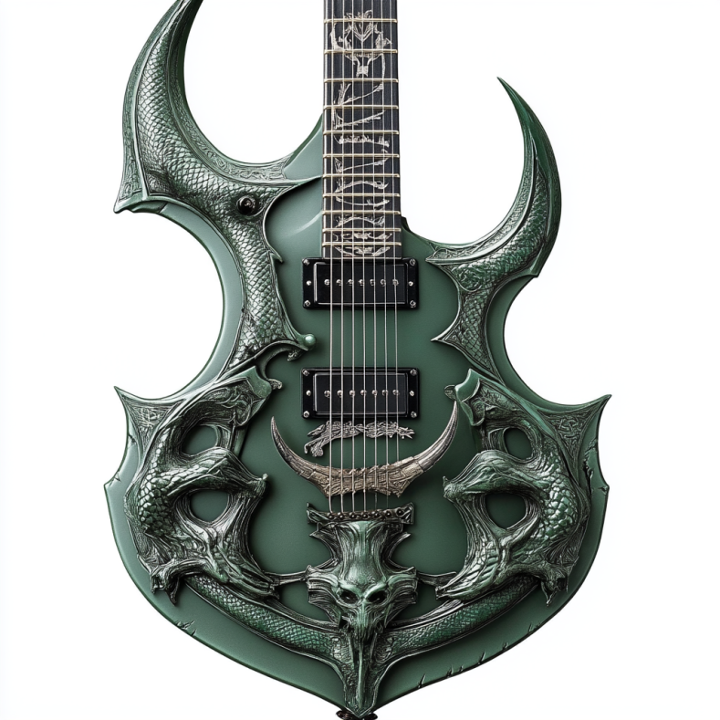 The Wylde Audio Warhammer NT Norse Dragon Bullseye Electric Guitar is built for serious guitarists seeking powerful tone and bold aesthetics. Featuring a mahogany body and a maple neck, this guitar delivers articulate resonance with punchy mids. Equipped with EMG 81/85 active pickups, the Warhammer NT offers blistering high-output tones, tight lows, and singing sustain. The ebony fingerboard with 22 extra-jumbo frets provides smooth playability, while the striking Norse Dragon Bullseye graphic in metallic green makes a bold visual statement. A TonePros locking Tune-O-Matic bridge ensures stable tuning, making this guitar perfect for both stage and studio performances.